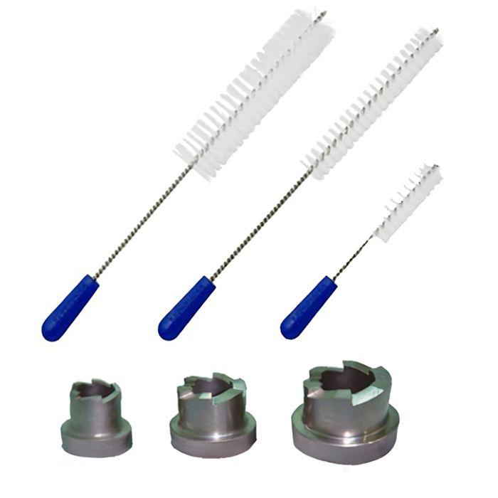 Maintaining cleanliness within the punch and die turret bore is essential for efficient machine operation. Turret cleaning brushes, along with die pocket cleaners, are specifically crafted to facilitate this task with ease. These brushes are tailored for various tooling sizes such as "D", "B", and "BB".